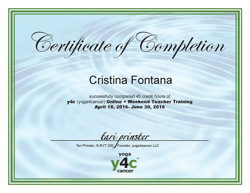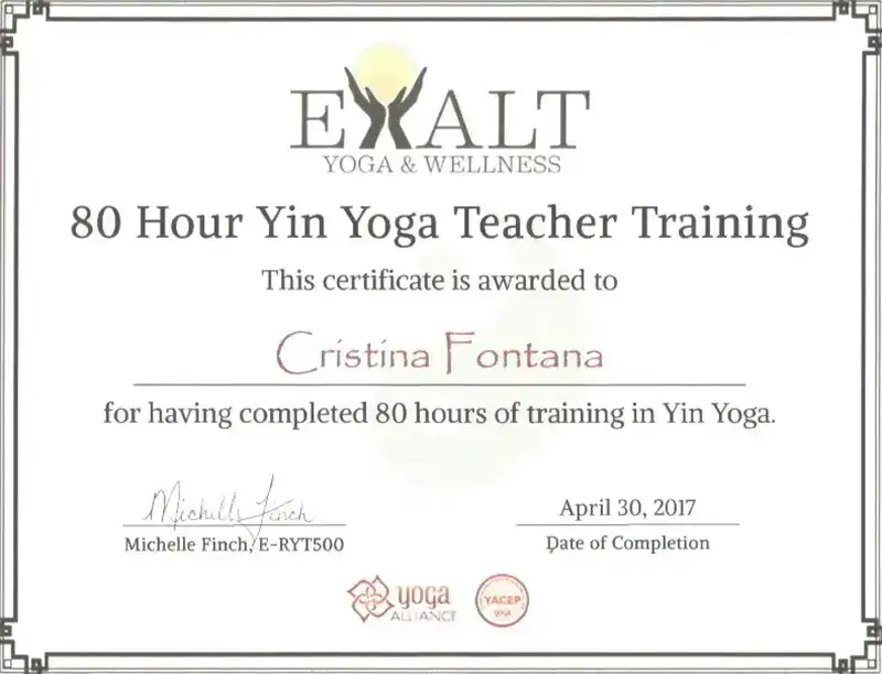 Seeking to further expand my knowledge and ability to contribute to others’ health, I immersed myself in the discipline of yoga, achieving 200 hours of teacher training (RYT-200) and certifications in yin yoga and yoga for cancer. My fluency in Spanish, English, and Italian has allowed me to extend my reach and inclusive approach to wellness coaching.