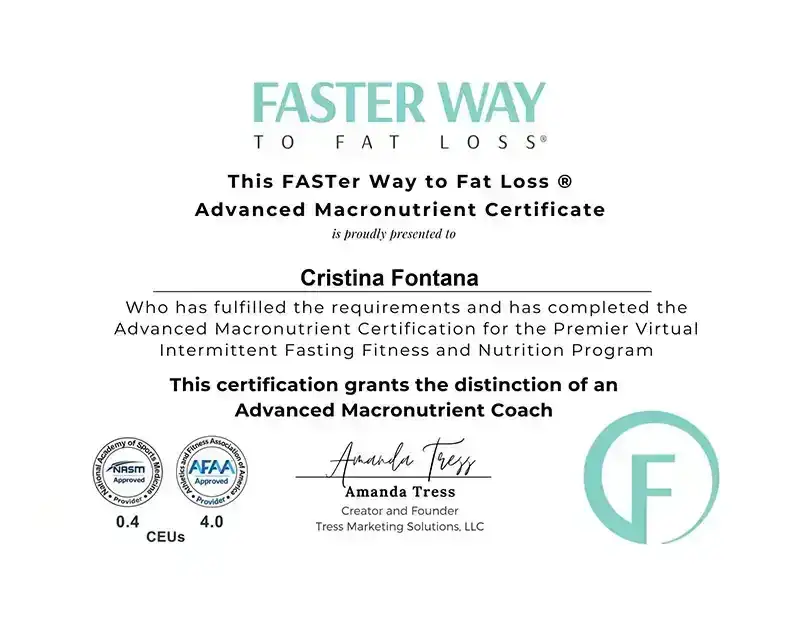 At Cristina Fontana Wellness, I specialize in guiding midlife women and kidney donors toward reclaiming their energy and achieving sustainable fat loss. Through strategic nutrition and customized workout support, I am here to support your journey to a healthier, fuller life.